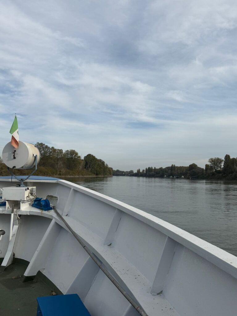 Dopo la visita, ci imbarchiamo sulla motonave per una minicrociera in battello sul Grande Fiume , con pranzo tipico emiliano : dai tipici e gustosi salumi locali DOP, alle tradizionali paste ripiene rigorosamente fatte in casa, dai classici arrosti alle torte caserecce, rigorosamente accompagnati dai vini DOC delle Terre Emiliane.